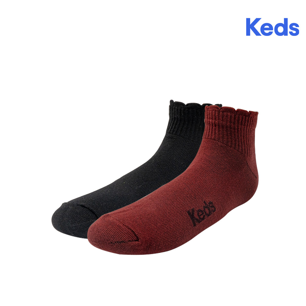 Keds Ribbed Frill Anklet Socks 2PK - Red/ Black (252FWS10)