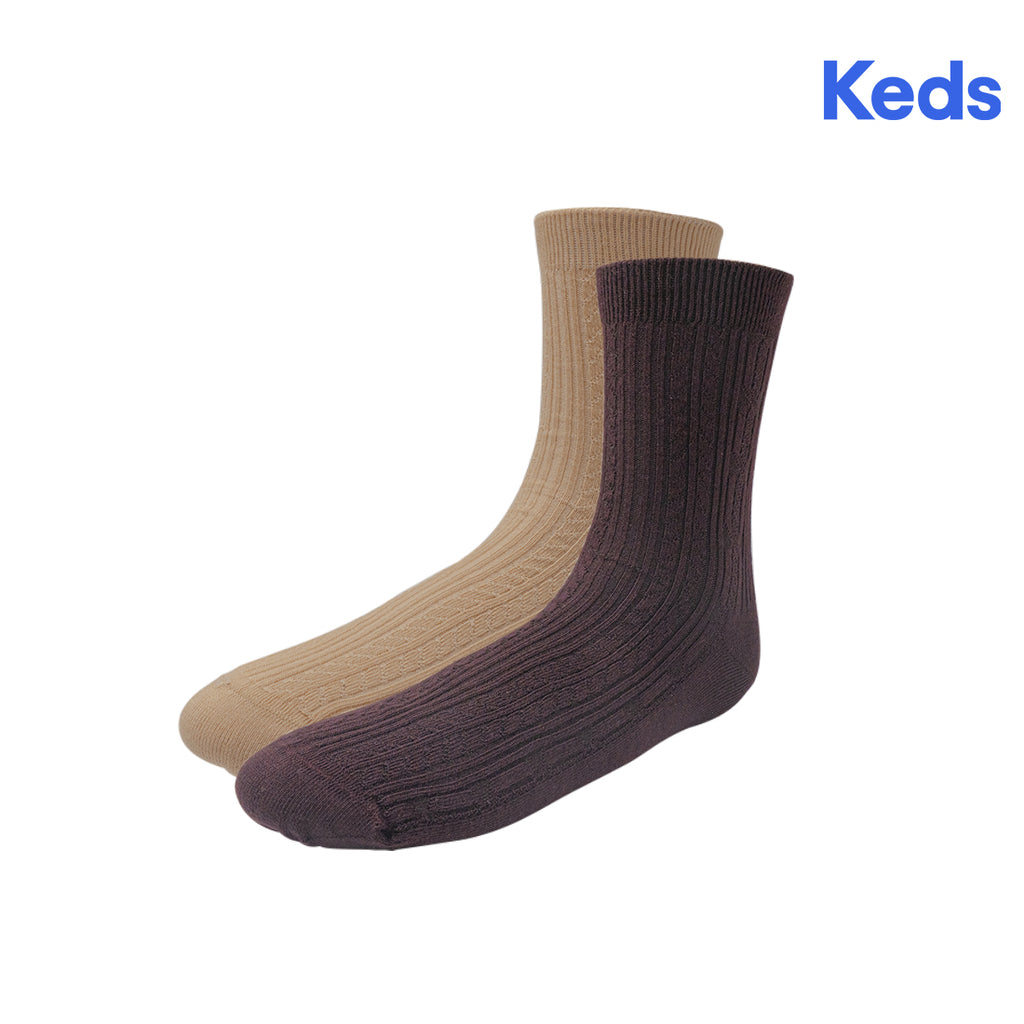 Keds Knitted Anklet Socks 2PK - Oatmeal/ Wine (252FWS07)