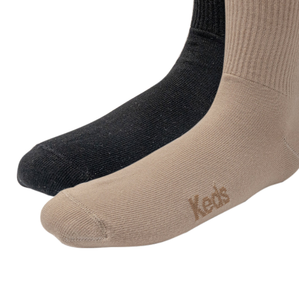 Keds Cushioned Crew Socks 2PK - White/ Blue/ Snow White/ Chocolate (252FWS04)