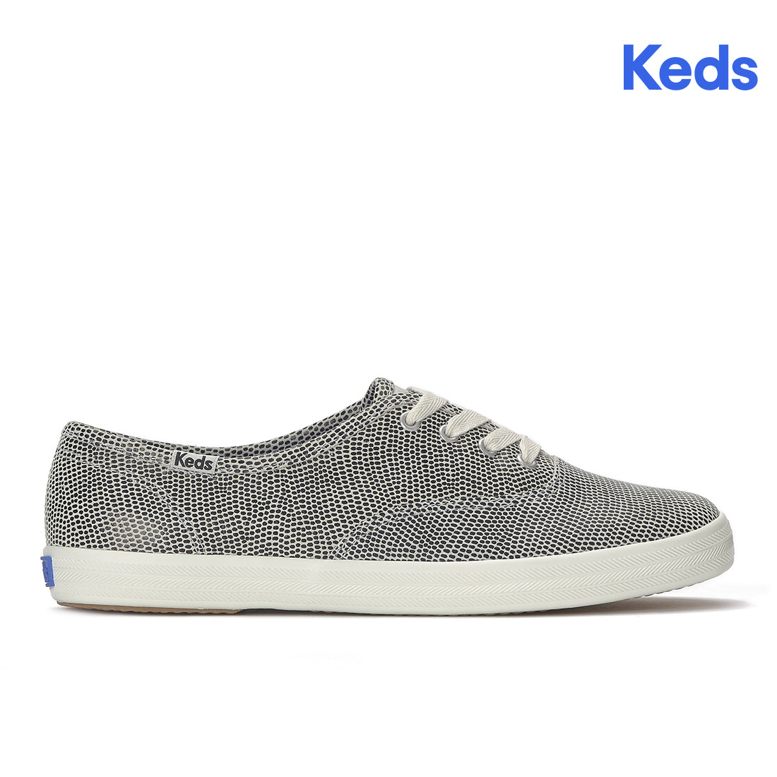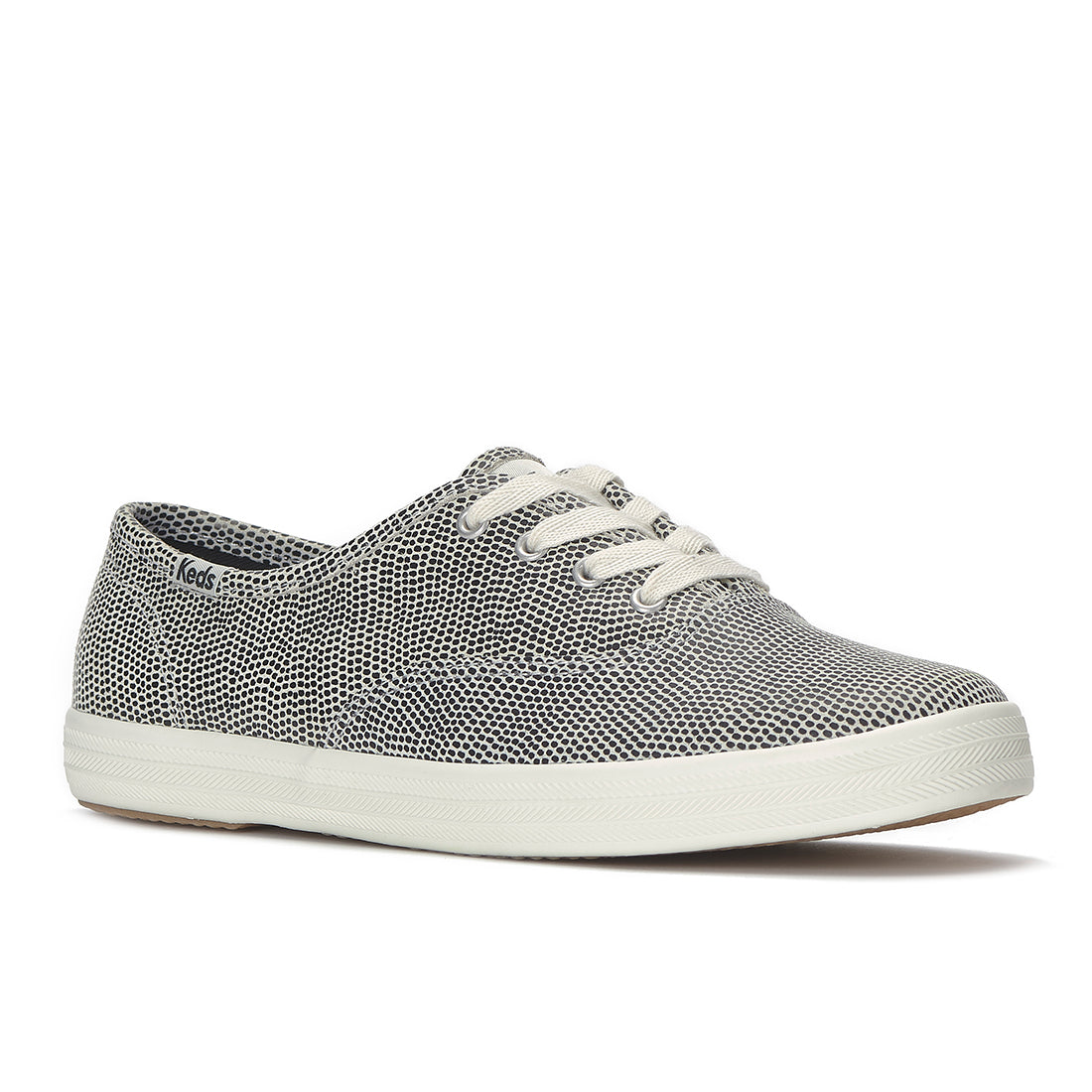 'A classic sneaker with a shiny twist. The iconic Keds Champion first debuted in 1916 as the first rubber-soled shoe of its kind—loved and worn by a legacy of taste makers and cultural influencers for over 100 years. With its timeless, instantly recognizable design and all-day comfort, this silver leather lace-up sneaker will add instant interest to every laidback look and dressy fit it's paired with. Adding to the effortless wearability, the insoles are rinseable, removable – simply take out the BlissFoam Tech footbeds before tossing the shoes in the machine on gentle cycle and then let them air dry.