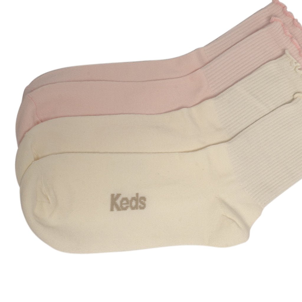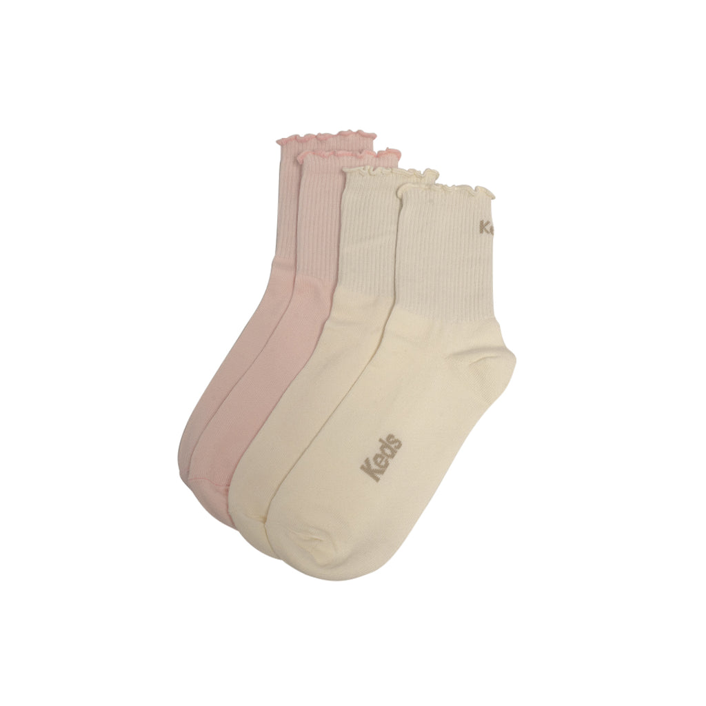 Keds Ribbed Frill Anklet Socks 2PK - Pink/ Snow White (252FWS08)
